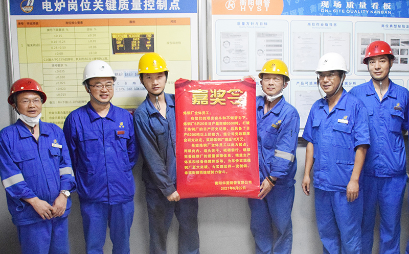 “加油、加油!”6月22日早上,煉鋼廠90噸電爐操作室充滿著振奮人心的力量。煉鋼員工接過公司副總經理程斯祥、何航頒發的嘉獎令和10萬元大獎,倍感振奮,倍受鼓舞。近日,煉鋼日產量連創新高,具備了日產6200噸以上的能力,6月20日更是一舉沖破6500噸大關,創造歷史最高日產紀錄。這是煉鋼廠全體黨員“學史力行”,帶領全體員...